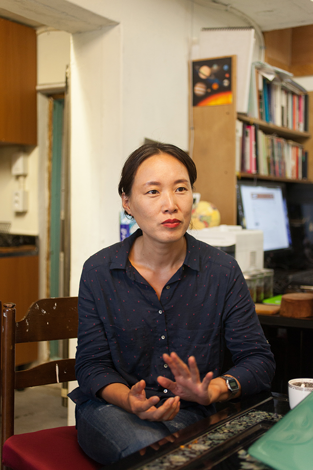 ![]() - 송민정 : 굿-즈를 통해 일반적으로 생각하는 부유한 컬렉터들 뿐 아니라, 정말 현대미술을 좋아하고 그에 관심이 있는 평범한 구매자들을 만나보고 싶었어요 그러면 시작해볼까요? 간단한 소개 부탁드립니다. 홍윤주 : 저는 건축을 하고 있고요. 진짜공간이라는 웹진을 ‘생활밀착형 건축잡지’라고 혼자 주장하면서 5년 동안 운영해오고 있어요. 그리고 공간 관련된 프로젝트는 인테리어부터 건축, 마스터플랜까지 다 해요. 가끔 <방춤>이라는 놀이도 하고요. 공간 관련된 작업은 거의 다 하는 것 같아요. - 송민정 : 평소엔 어떤 라이프 스타일을 추구하시는지 궁금합니다. 홍윤주 : 라이프 스타일이요…. (일동 웃음). 홍윤주 : 그냥 재밌는 일을 찾아다니는 것 같아요. 노는거 되게 좋아해서 재밌는거 찾아다녀요. 뭐 어떻게 설명할 수가 없네. 예전에 직장생활 했을 때에는 야근하고 월급 따박따박 들어왔어서, 보상심리로 택시도 타고 카드로 쇼핑도 하고 그랬는데요. 그때하고 지금을 비교해보면 돈은 그때보다 없지만, 더 여유가 있다고 해야 하나? 통장 잔액은 그런데도 똑같아요. 그때도 없었고, 지금도 없어. (일동 웃음). 이미정 : 저희가 라이프 스타일을 여쭤봤던 건, 홍윤주님도 예술생산자의 입장이신데, 다른 사람이 만든 걸 사고 향유하시는 부분이 얼만큼 될까 궁금했기 때문인데요. 예를 들면 공연을 보거나 타인이 쓴 책을 사는 것, 작품을 사는 경우도 있을 테고요. 홍윤주 : 진짜공간을 시작하게 된게 2000년 초반 아파트 광고 보면서부터였어요. 아파트 광고에서 연예인이 유럽의 귀족 옷을 입고 롯데캐슬 이런 것들을 광고하더라고요. 이영애, 전지현… 다 그랬어요. 그런 광고나 패션잡지, 인테리어잡지에서 보여주는 이미지가 내 삶과 너무 동떨어져 있는 거예요. 그래서 건축이나 공간도 생활에 밀착된, 생활에서 보이는 것들을 찾아다니기 시작했고, 그런 맥락에서 호상근 작가의 그림이 좋았어요. 그림의 소재가 보통은 주목받지 않는 것들이잖아요. 그냥 길거리에서 포착하는 것들, 굉장히 일상적인 것들. 흔히 볼 수 있는 것들이지만, 거기에 작가의 시선이 살짝 들어가는 그런 면들이 너무 재밌더라고요. 작품을 보면 뭔가 말로 설명은 못하겠는데, 저도 분명히 봤거든요. 저런 모습들. 은근하게 보이는 것들. 그런게 좋아서 호작가 그림을 샀어요. - 송민정 : 그럼 혹시 문화지출비가 수익대비 어느 정도 되시는지, 퍼센테이지 정도로 말씀해주실 수 있을까요? 홍윤주 : 별로 없어요, 사실. 사실 대부분은 먹는 걸로 쓰고요. 송민정 : 엥겔지수… 저도ㅎㅎ. 홍윤주 : 그런데 어떻게 보면 친구들이랑 노는 것도 문화비라고 볼 수 있을 것 같아요ㅎㅎ. 같이 작업실 쓰던 친구가 별자리도 하고 영상도 하거든요. 그래서 여기 옥상에서 프로젝터로 영상을 틀어 놓고…. 이미정 : 페이스북 이벤트 만들어 주세요ㅎㅎ. 송민정 : 그렇다면 미술에 관련해서도 딱 분리해 이 정도를 지출하고 있다, 이런 것은 없겠네요? 때에 따라서 좀 다른? 홍윤주 : 네네. - 송민정 : 미술에 관심을 가지게 된 계기는 무엇인가요? 홍윤주 : 사실은 초등학교 때부터 계속 그림을 그렸어요. 학교에서 미술부 이런 걸 시키잖아요ㅎㅎ. 중학교 때까지 쭉 미술부였고요. 저희 때는 고등학교 때 무조건 이과로 가야 된다란 분위기였는데, 이과 다니면서 미술이랑 가장 관련 있는 과가 건축과라고 하더라고요. 그래서 건축과를 간 거였어요. 음… 나이 들어서는 미술… 미술이라기보다는 예술이 제가 굉장히 살아있다는 것을 느끼게 해줄 때가 있어요. 그러니까 어떤 음악을 들을 때라든지… 그런데 음악이 아주 좋을 때도 있고, 미술작품이 아주 좋을 때도 있고. 물론 그렇게 환희를 줄 때는 정말 드물죠. - 송민정 : 호상근 작가님 작업이 처음 구매하신 작업인가요? 홍윤주 : 네. 맞아요. 처음으로 돈을 주고 작가에게서 작품을 샀어요. 송민정 : 그럼 어떤 방법으로 연락하셔서 구매를 하시게 되었나요? 홍윤주 : 호상근 작가를 알게된게 꿀풀… 한남동에 있을 때 알았어요. <호상근 재현소>라고 순간을 그려주시는 프로젝트 있잖아요. 그때 제가 그림을 부탁했는데, 그게 묘사가 된 엽서가 저희 집에 날아왔어요. 그걸 딱 보는데 너무 기분이 좋더라고요. 이미정 : 사연을 이야기하면 보내주시기까지, 1년이 걸릴 수도 있고 2년이 걸릴 수도 있다고 말씀해 주시잖아요. 얼마만에 받으셨어요? 홍윤주 : 그때 한 2개월인가? 1개월인가? 이미정 : 아, 프로젝트 초기라서 빨랐나보군요. 저는 작년에 이야기했는데 아직 안 와서…. 송민정 : 아직 안 왔구나. (일동 웃음). 이미정 : 기다리고 있습니다. 그럼 그 엽서를 받고 더 관심이 가게 되신거네요? 홍윤주 : 네, 그리고 그때 꿀풀에서 파티를 했는데 호작가의 댄스 본능은…! 춤 진짜 잘 추세요. 송민정 : 아 그게 호상근 작가님이었구나. 저 어렴풋이 싹 지나가는 기억이 있는데, 한 몇 년 전에 약간 캐릭터 같으신 분이 너무 귀엽게 춤을 추셔서… 저도 꿀풀에서 봤었거든요. 이미정 : 같은 시공간에! 송민정 : 저 사람은 도대체 어떤 사람이길래 저런 무용을 구사하지? 그런 생각을 했는데, 호상근 작가님이